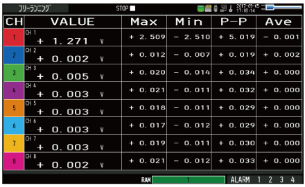 顯示測量數(shù)值+實(shí)時運(yùn)算值時,表示的是測量數(shù)值(現(xiàn)在的測定值)和實(shí)時統(tǒng)計(jì)運(yùn)算值的MAX值?MIN值?峰峰值?平均值