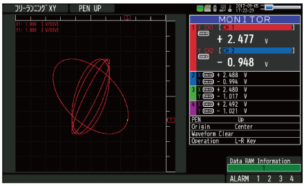 XY畫面 實(shí)現(xiàn)了相當(dāng)于XY記錄儀的功能 搭載了提筆/落筆的位置移動功能 ![]() |