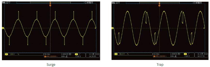 IT-M7700系列提供突波/陷波的模擬功能,用戶可以根據(jù)需求在輸出正弦波的基礎上加上突波/陷波來模擬電路系統(tǒng)中電壓的異常波動,從而測試待測物在此種環(huán)境下的使用情況。